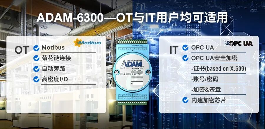 此外,研华ADAM-6300 I/O 模块在原本I/O基础上强势升级,支持菊花链连接、支持自动旁路且配备高密度I/O,还支持OPC UA安全加密,内建加密芯片,既适用于OT使用者,也适用于IT使用者。