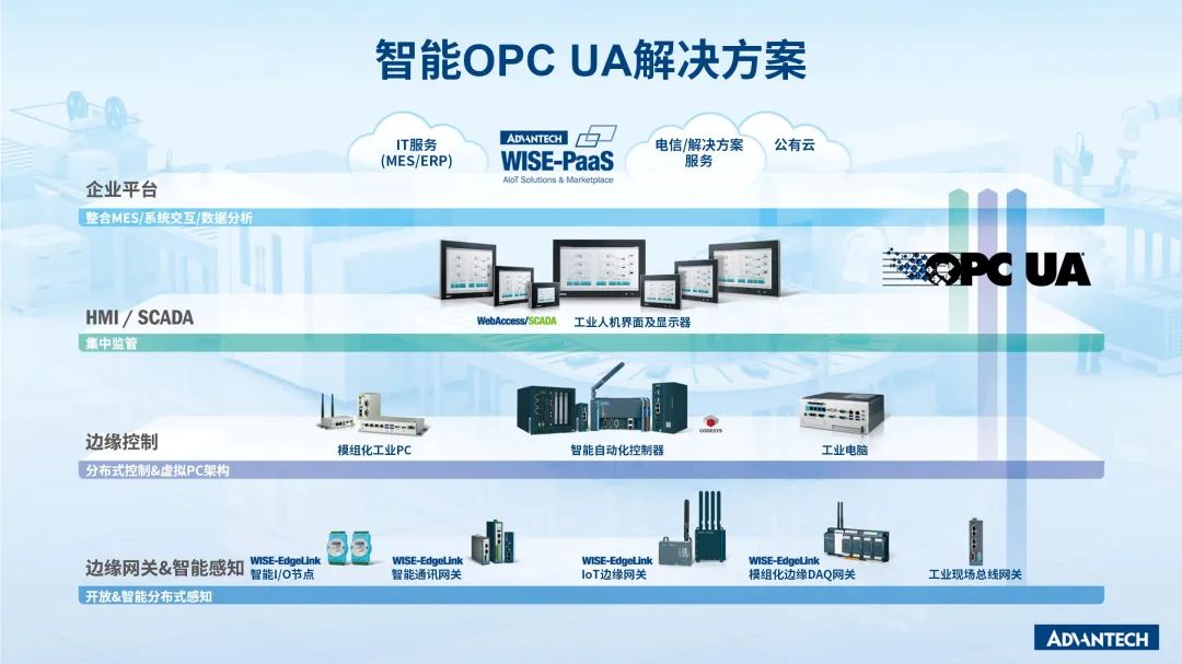 OPC UA以开放的通信统一架构为制造商简化了机器到机器的通信,而研华拥有丰富的支持OPC UA的产品解决方案,系统无缝通讯难题,就让研华为您解决。