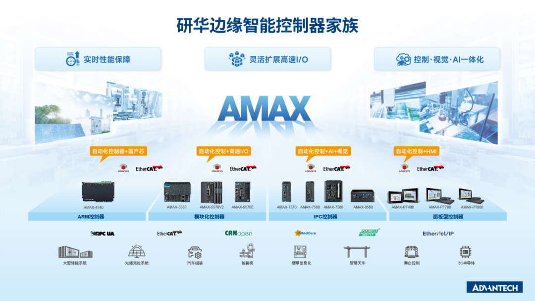 AMAX Studio的强大,不仅在于软件本身,更在于其与研华丰富硬件产品的深度耦合。它能完美适配研华全系列工业边缘控制器、分布式I/O及通讯网关,形成“软硬整合”的一体化解决方案,消除协议适配难题,快速部署,实现开箱即用的丝滑体验,并大幅降低全生命周期的维护成本与技术门槛。